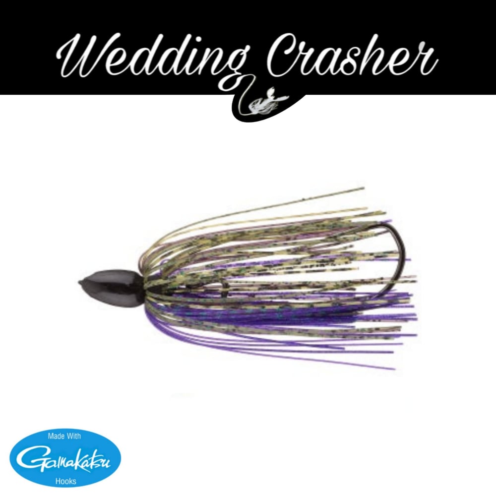 The original articulating linked hook jig. As the name suggests, the Wedding Crasher was initially created as a lethal bed fishing tool. When paired with a buoyant trailer, the linked design allows the trailer to freely rise up, providing unparalleled action with the slightest movement of the rod, resulting in a violent irresistible strike! But its effectiveness and versatility isn't limited to breaking up the party between bride and groom, the Wedding Crasher also has become a favorite flipping jig of many anglers as well, the 5/0 Gamakatsu EWG Superline hook allows the user to utilize an unlimited array of plastics for a deadly combination. But wait, when your favorite 4" to 6" swimbait is threaded on, you now have one of the most deadly swim jigs on the planet, capable of navigating in and around cover most other jigs dare not venture!